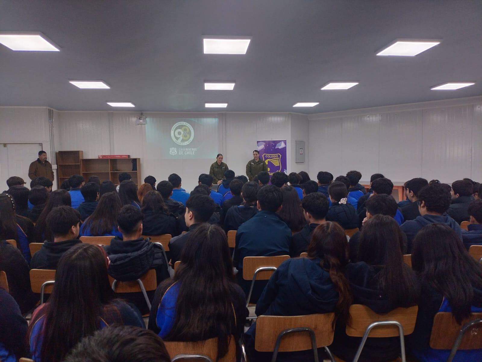 Charla sobre Responsabilidad Penal Adolescente dirigida a estudiantes desde 1° Año Medio hasta 4° Año Medio, enfocada en Informar y sensibilizar a los y las estudiantes respecto a la responsabilidad penal adolescente, fomentando conductas responsables, el pensamiento crítico y la prevención de situaciones de riesgo.